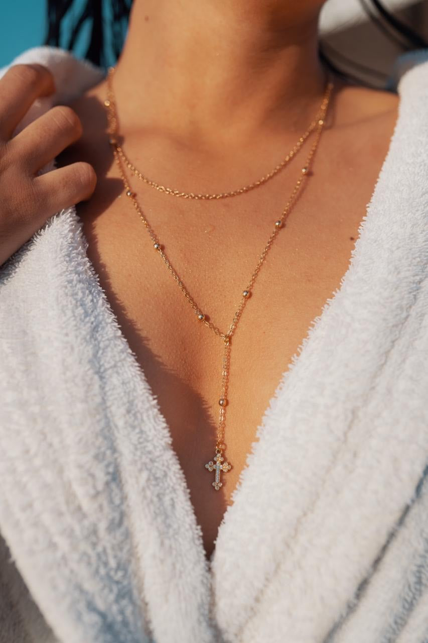 $28.990$28.990/Lamino en oro de 24K Incrustaciones de cristal Zircon Collar doble Laminado en oro de 24k